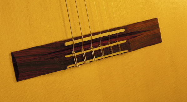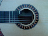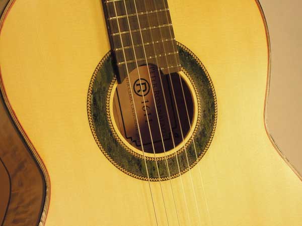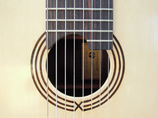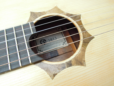 This guitar has an Alpine Spruce top and Montenegro Poplar sides and back, a flat fingerboard and enhanced fan bracing.
