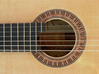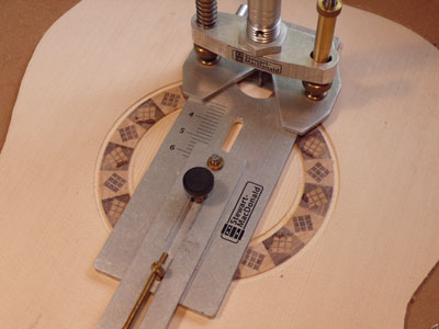 The body of the guitar is made up of the Top, the Back and the Rim. The Rim is made from two symmetric pieces of thin wood, called the Sides. These are usually from the same wood as the Back. Before building the Body, the main components must be brought to the correct thickness. The thickness is determined by a tradeoff between strength, weight and acoustical behavior. The Body needs to be as thin and light as possible and yet strong enough to hold up to the force of the combined tension of all strings. And it must be flexible enough to resonate with the vibration energy from the plucked strings which couples with the air inside the body and creates the sound waves coming out of the soundhole. In a nutshell, this is what the sound of the instrument is all about.