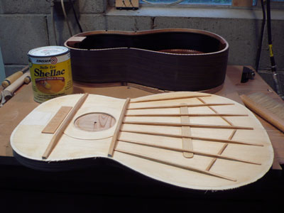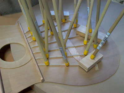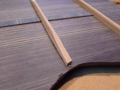 preparation for the kerfing strips to be glued to the top and