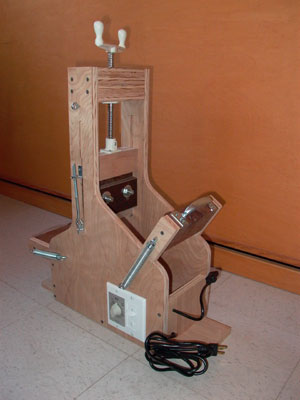 a bending machine where the moistened side wood is "cooked" between two