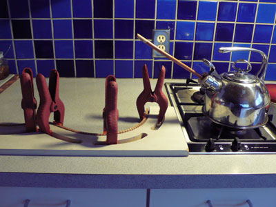 then clamped to a form to cool.